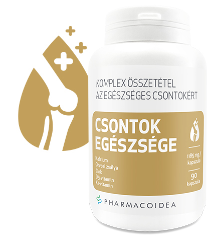 A gyümölcsökben, zöldségekben, teljes kiőrlésű gabonákban, halban és baromfiban, diófélékben, hüvelyesekben és alacsony zsírtartalmú tejtermékekben gazdag egészséges táplálkozás a csontok jobb egészségével jár együtt. A megfelelő mennyiségű D-vitamin, és kalcium bevitele különösen fontos a csontok egészsége szempontjából. A jó K-vitamin-források, például a leveles zöldek, a kelbimbó és a brokkoli szintén hozzájárulnak a csontok normál állapotának fenntartásához. A Pharmacoidea CSONTOK EGÉSZSÉGE étrend-kiegészítő a csontok komplex igényeinek figyelembe vételével lett kifejlesztve, támogatva a csontok normál állapotának fenntartását és a csontszerkezet ásványianyag-pótlását.